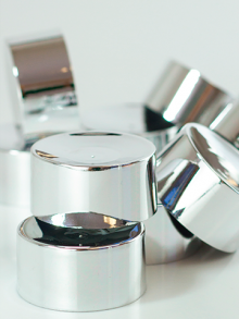 Tampas metalizadas, com alta transparência e efeitos marmorizados.